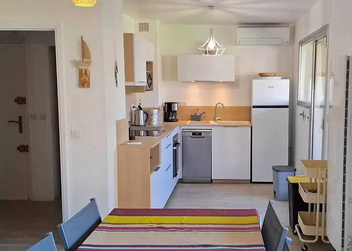 Mikrovlnná trouba, chladnička a pračka jsou také k dispozici. Tento apartmán o rozloze 56 m^2 se nachází 25 km od letiště Hyeres.